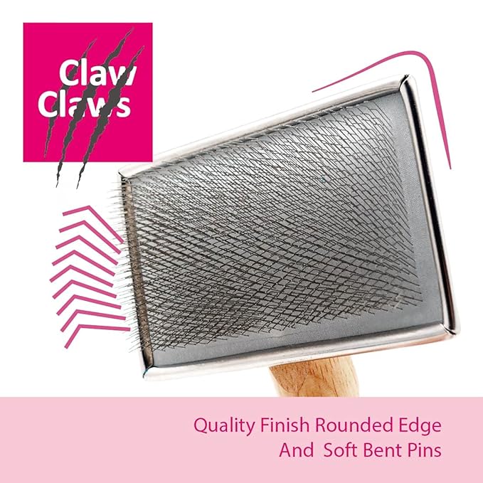 - 【Stainless Steel with Soft Bent Pins】-The slicker brush with the soft bent pins can penetrate into your pets’ fur and without scratching and irritating skin. It not only can gently and effectively remove loose undercoat, tangles, knots, and mats but also suitable for using after bathing or at the end of the grooming process.