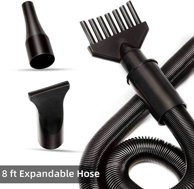 - 4 Nozzles & Expandable hose: Comes with 4 different styling nozzles for all dog breeds, hair shapes and body parts. The expandable hose could be stretched from 3ft to 8ft long, which makes this dog dryer handy to use both for household or salon.