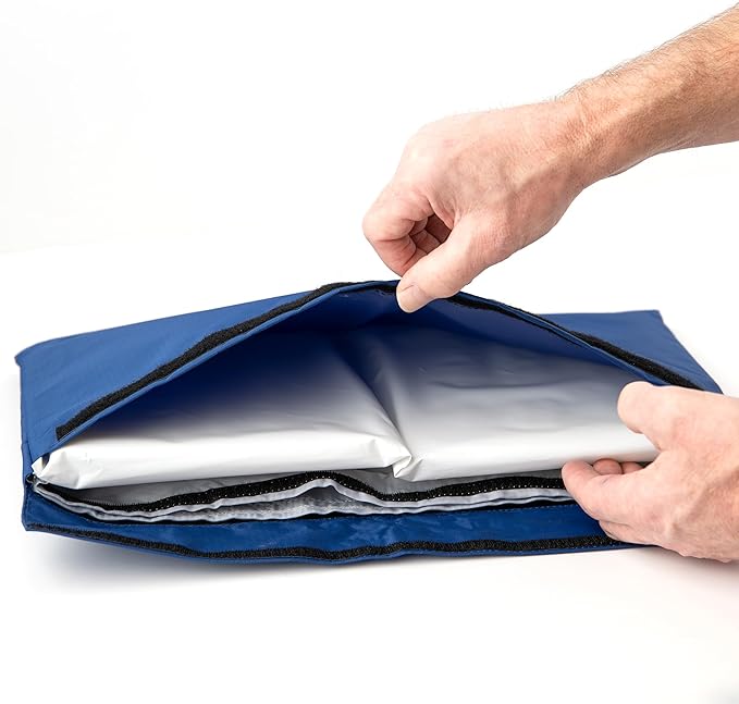 - INCLUDES: (1) 18"x10.5" Hydro Cooling Mat Cover, (1) FlexiFreeze Ice Sheet (40 cubes), (1) Waterbed Cushion, (1) Insulating Foam Insert. Buy additional CoolerDog Refill Ice Sheet for Hydro Cooling Mini Mat for extended cooling, ASIN B09HHQ751M.
