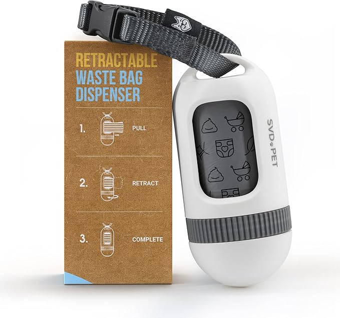 SVD.PET Dog Poop Bag Dispenser, Retractable Waste Bag Fits Any Dog Leash, Drop-Proof Poop Bag Holder, Doggy Walking Accessory (Pearl White)