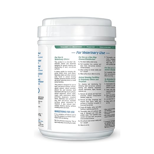 - Versatile – Ideal for use on counter tops, cages, kennels, litter boxes, equipment, and most hard non-porous surfaces in clinics and homes.