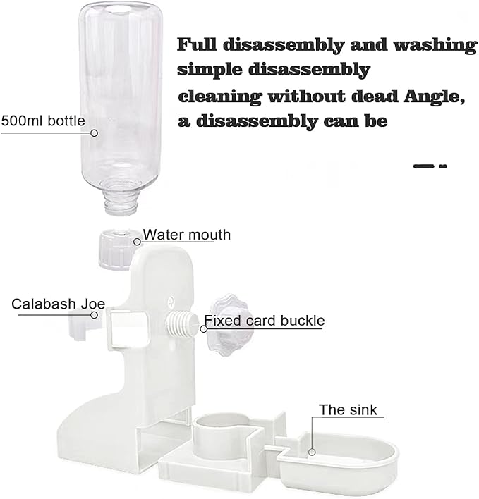 - 【500ml/17oz Water Bottle】Our water dispenser is made of non-toxic and durable plastic. large capacity water feeder, no longer need to worry about your pet has not enough water to drink if you are not home all day.Water bottle holder is suitable for most cages.