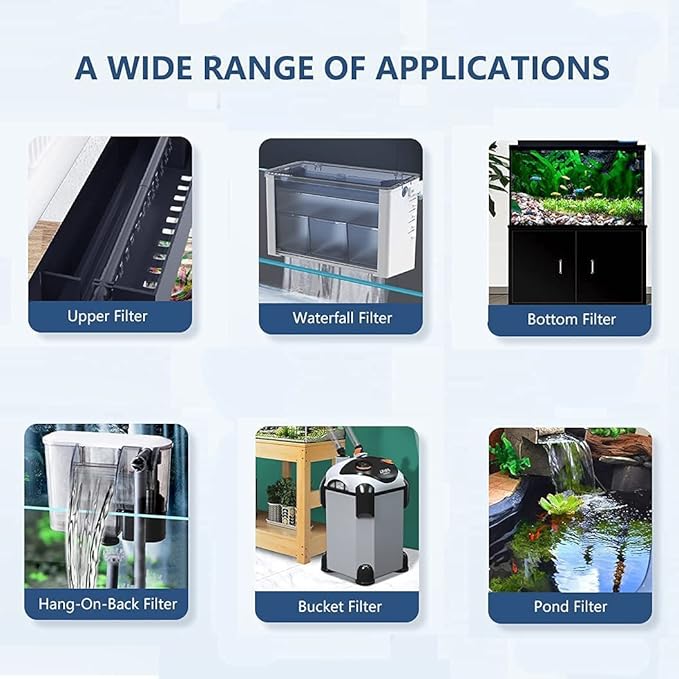 - EASY TO USE - Our aquarium filter media allows you to cut to fit any size filtration. Pads can be used in hang-on-back filters, canister filters, wet or dry filters, sumps, and pond filters. Perfect for freshwater tank, sea water tank, reef aquariums, fish tanks, shrimp tanks, aquaponics systems, turtle tanks, terrariums, water plants cylinder, and much more.