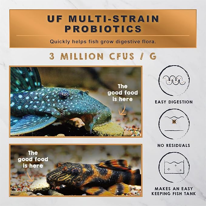 - β 3 Million CFUs/g Probiotics 3 million CFUs/g probiotics are within our food to automatically help dissolve fish excrements, residuals and keeps water clean. Other than that it helps fish to fully absorb nutrition, help to excretion, enhance the immune system and lower the risk of digestive problems.