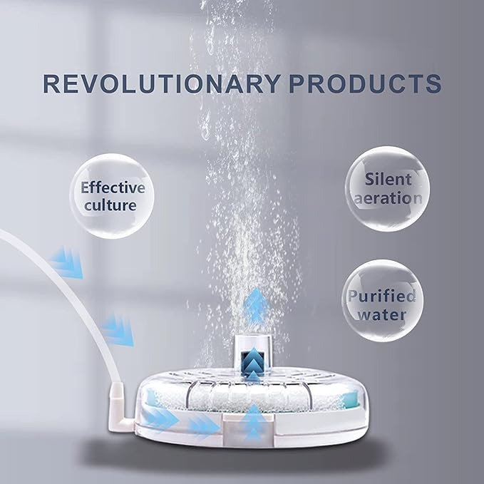 - Perfect Design: Round and ultra-thin design, small size, saving space in the fish tank, compatible with air pump wattage >1W. (Air pump and air tube are not included in the package). Please prepare an air pump suitable for this filter according to your fish tank size