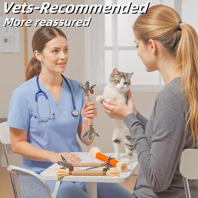 - 3.[Chew for Cleaning Teeth]: It can effectively eliminate plaque and tartar, clear off fetid breath and protect oral health. Exfoliating dental plaque build-ups on their teeth while cats chewing these cat grinding stick stuff (toothpaste effect), improve dental oral health.