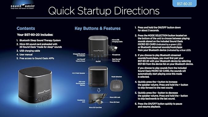 - COMPLETE PET THERAPY SOLUTION. Includes sound machine, 20 built-in sounds, USB charging cable, Help Your Pet Relax & Sleep Booklet, no cost use of Sound Oasis pet therapy APP. Let our 25 years of sleep expertise help your pet achieve a happier and healthier life with better sleep and relaxation; high quality sounds and construction.