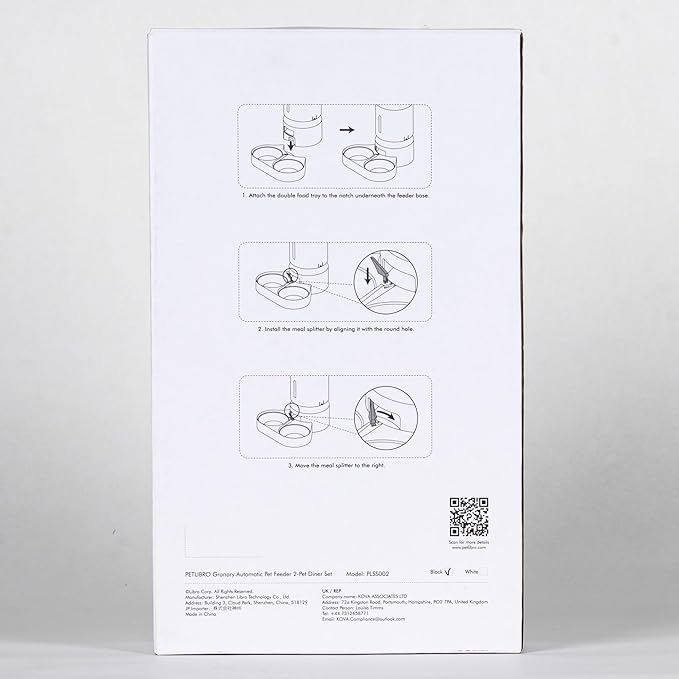 - Easy to Set up: Firstly, attach the food tray with bowls to the notch underneath the feeder base, and secondly, install the meal splitter by aligning it with the round hole, then it's ready to go.