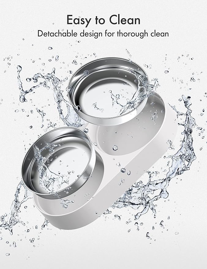 - Easy to Clean: Easily remove the stainless bowls from the food tray, wash them under running water for thorough clean.