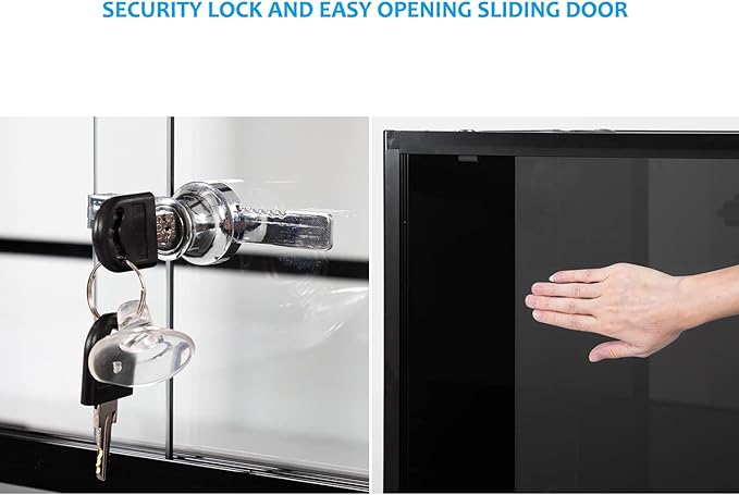 - 【GOOD VENTILATION AND UVB/HEAT IRRADIATION】Screen top provides ventilation and allows uvb and infrared penetration. Front sliding doors can open easily to feed your pet and prevent escape with the secure lock.