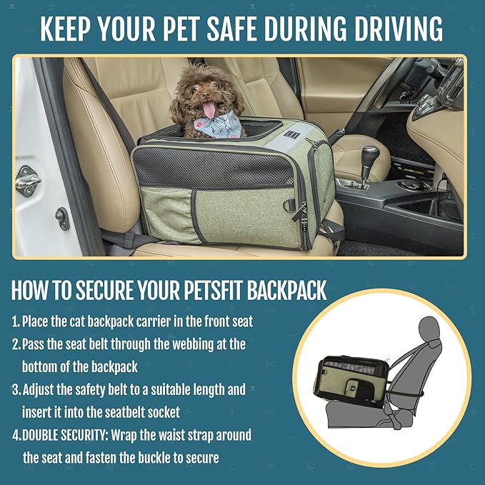 - KEEP YOUR PET SAFEοΌThe cat backpack carrier adopts durable lockable zipper (in opening) and a build-in safety belt which prevent pet from escaping from inside, thickened zipper on the bottom, fine workmanship, durable and not easy to break ,providing better security for your pets