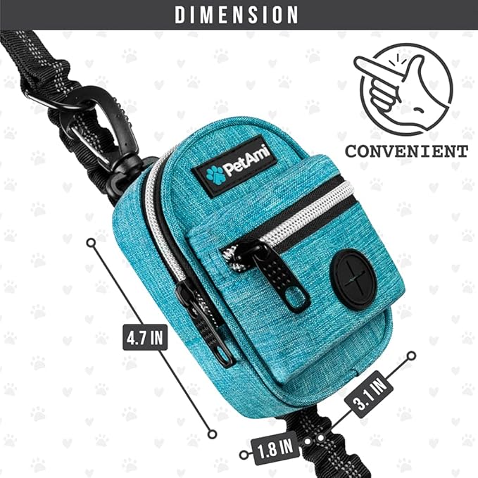 - TEAL BLUE WALKING BAG: PetAmi poop bag holder dispenser includes one roll of dog poop bags, measures 4.7 x 1.8 x 3 inches, and is made of durable oxford polyester. Cute mini backpack doggy trash bag carrier is refillable and is compatible with most dog poop bag rolls. This pet travel bag is a great gift for dog mom, dad, parents, owners and trainers. Comes in multiple colors to mix and match your dog leash.