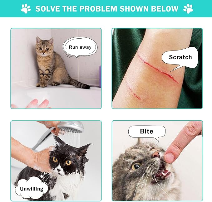 - Easy to Use: The cat shower bag set is a good helper for pet care. With the size of 21.6 inch long and 12 inch in head circumference, the cat’s body can be wrapped completely and controlled effectively, saving you lots of energy on cat’s bathing