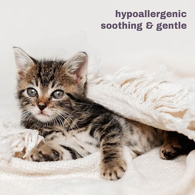 - Product Benefits : Provides a quick, easy, and waterless clean while soothing itchy skin and ensuring a safe, natural, and hypoallergenic grooming experience for cats. Provides a quick, easy, and waterless clean while soothing itchy skin and ensuring a safe, natural, and hypoallergenic grooming experience for cats.
