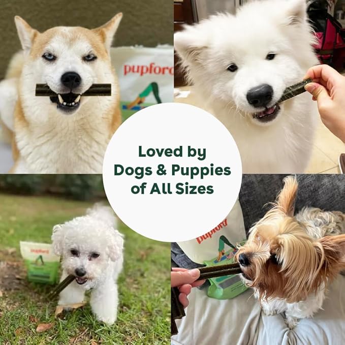 Pupford Dental Chews for Dogs, All-Natural 4-Inch Sticks for Plaque, Tartar & Bad Breath, Grooved Texture, Limited Ingredients, Made in USA (14 Count)