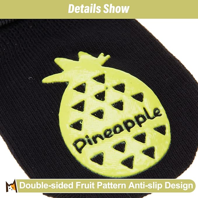 - Durable Material: Made of elastic and comfortable material, which keeps your dog safe and relaxed. The soft and breathable fabric makes these socks protect the dogβs paws from being burned in the hot summer and prevent dog claws from stones and glass. Cute fruit pattern even makes your dog look charming.