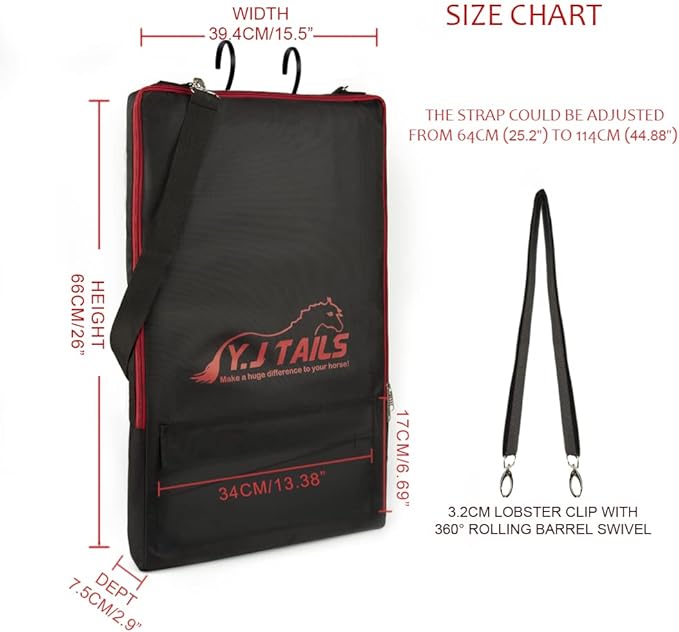 - Horse halter bag: With 3 sturdy hooks and shoulder strap for carrying purpose, the exterior hooks on the top are fixed and can hang from a trailer, door or any other small bar