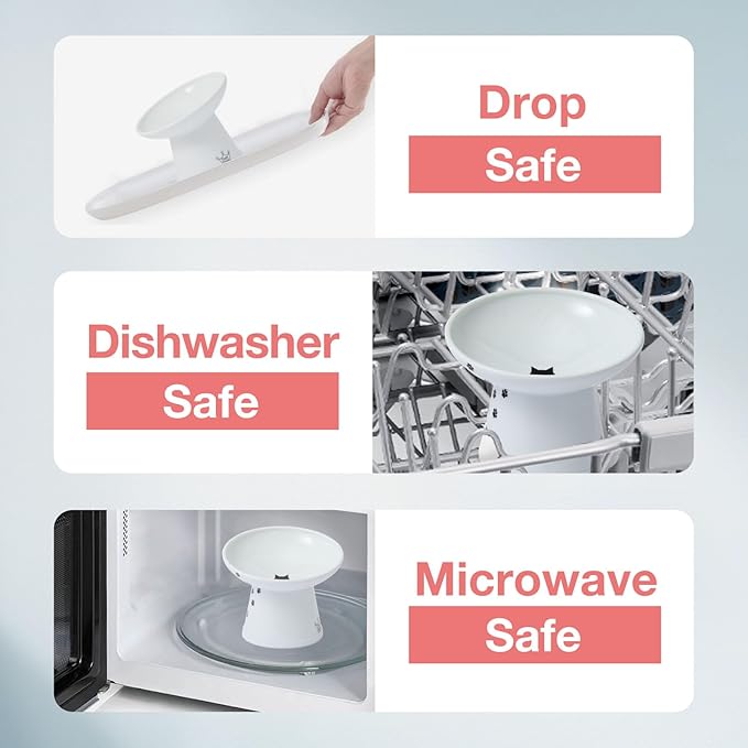 - Necoichi’s largest bowl yet! Bowl measures 6.1 x 5.7 inches in diameter, 1.8 inches deep and 5.3 inches tall, which when combined with the tilted lip, resolves any issues that certain breeds may have encountered with previous bowl types. The tilted lip makes it even easier for flat-faced cats and messy eaters to dine with less difficulty and stress.