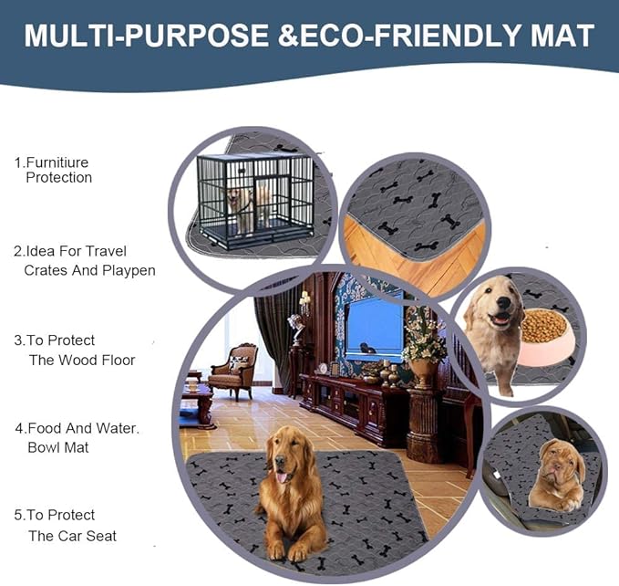 - Multipurpose - Reusable extra large - 60" x 72"dog potty pet training pads , use in dog kennel & dog crates for large dogs, training puppies pee in playpen or assisting incontinence elderly,as whelping pads & incontinence bed pads & waterproof floor mat for pets. They are ideal for protecting carpet,wood floor,furniture,sofa,car seats during travel.