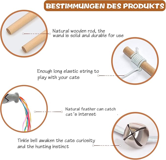 - 🐾High quality materials: Cat feather toys set is made of high quality materials. High quality rod, sturdy and durable, pure natural feather. The feather toys are dangling from an elastic cord attached to the pole, safe for your cats. Longevity and security are a matter of course for us.