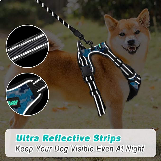 BARKBAY No Pull Dog Harness Large Step in Reflective Dog Harness with Front Clip and Easy Control Handle for Walking Training Running(Blue camo,M)