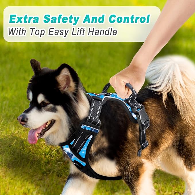 BARKBAY No Pull Dog Harness Large Step in Reflective Dog Harness with Front Clip and Easy Control Handle for Walking Training Running(Blue camo,L)