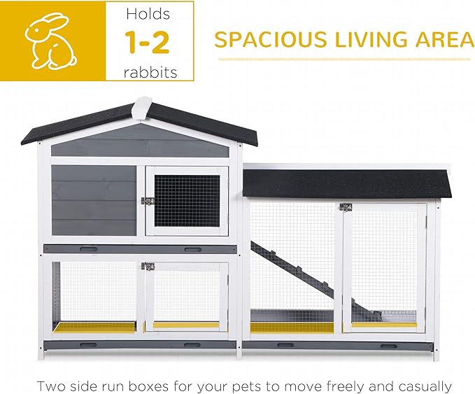 - Spacious Living: With a 4 ft. sq. main house and 7 ft. sq. rabbit run area, your rabbit will have enough room to roam and a private space to rest. Suitable for 1-3 small to medium-sized rabbits. And there is a ramp that connects the two levels.