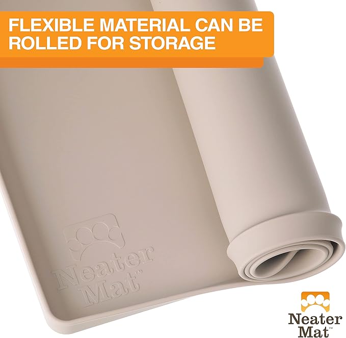 Neater Pet Brands Neater Mat Pet Mats for Food and Water, Cat & Dog Bowl Mat Waterproof Silicone, Feeding Tray, Dog Food Mats for Floors, Placemat w/Raised Edge for Under Bowls, 16” x 10”, Cappuccino