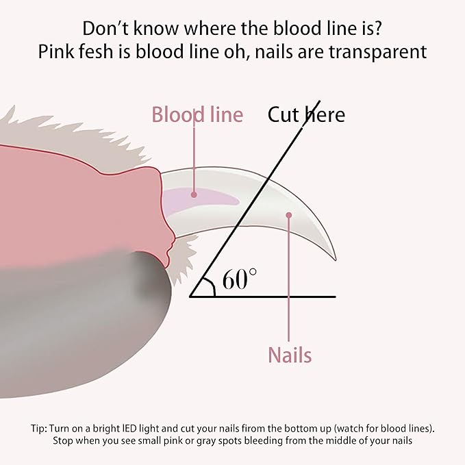 - COMFORTABLE DESIGN: Pet nail clippers, β Stainless steel is hypoallergenic. that allows you to securely and comfortably take them in order to painful accidents. Ergonomically designed handle is very lightweight and comfortable. Keeping your pet's nails neatly trimmed with our LED Nail Clippers, designed specifically for cats, small dogs, rabbits, and birds.