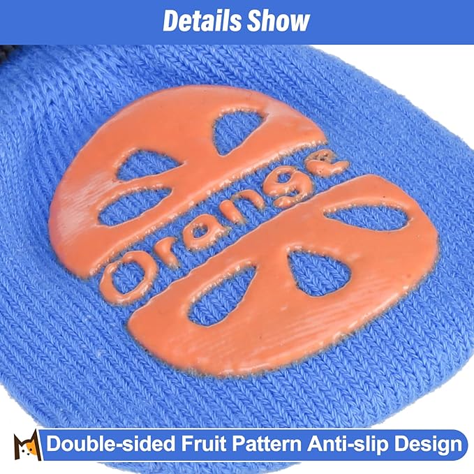 - Durable Material: Made of elastic and comfortable material, which keeps your dog safe and relaxed. The soft and breathable fabric makes these socks protect the dog‘¯s paws from being burned in the hot summer and prevent dog claws from stones and glass. Cute fruit pattern even makes your dog look charming.