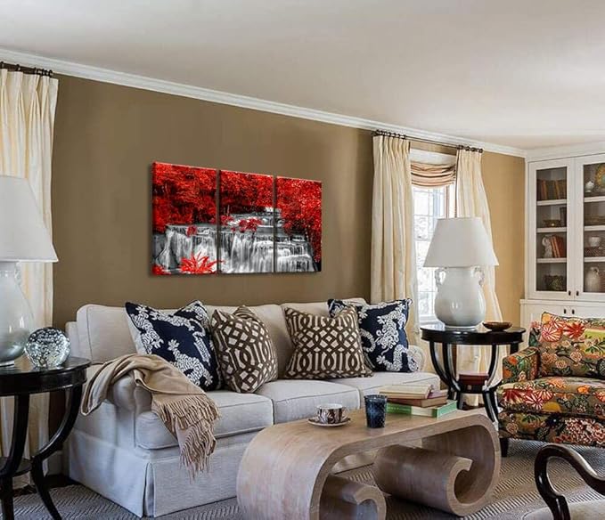 - 🍂Perfect Black White Red Landscape Wall painting:The high-quality canvas is printed with multi-level waterfall scenery, which makes you feel that you are looking at the beautiful landscape every day and the red woods decorate the whole room.