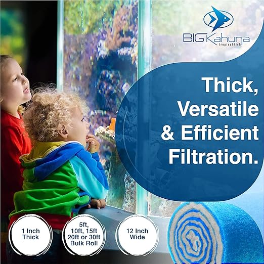 Big Kahuna Aquarium Filter Floss Rolls – 12-inch Pond and Aquarium Filter Media – 1-inch Thick Wet/Dry Aquarium Filter Pad – Bonded Filter Media Pad for Freshwater or Marine Aquariums, Ponds – 5ft