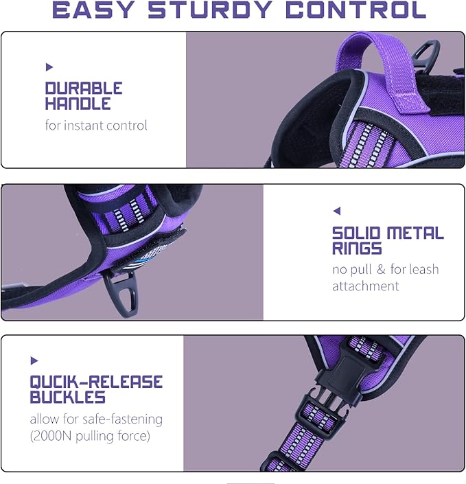 BUMBIN Tactical Dog Harness for Large Dogs No Pull, Famous TIK Tok No Pull Puppy Harness, Fit Smart Reflective Pet Walking Harness for Training, Adjustable Dog Vest Harness with Handle Purple L