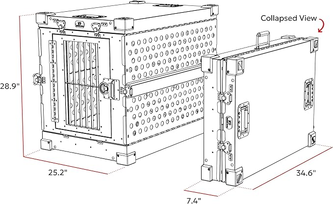 - SAFE AND SECURE: Constructed of durable lightweight aluminum and thoughtfully engineered with your dog’s safety in mind. Strong and secure design to ensure your pet is safely contained at all times. Includes 16 knurled bolts giving you the option to quickly increase the overall rigidity and strength of your crate.