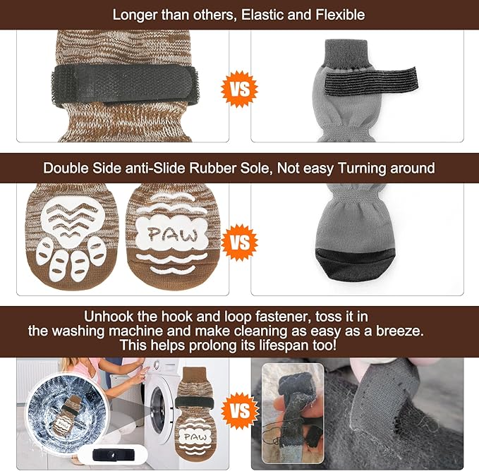 - Anti-slip: With a three-sided non-slip rubber sole, your pet's paws will have a good grip on the floor. For hardwood floors, if your baby's paws have a problem slipping on wood floors, we recommend you buy these socks with a anti-slip adhesive. Use non-slip socks to help heal foot wounds and prevent the dog from licking and further irritating the wound. β οΈPlease note that we have a design patent to protective this exclusive design!