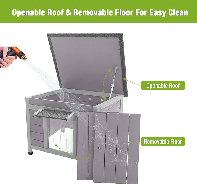 - 【Openable roof and removable bottom】: The roof of cat house is openable and the bottom panel is removable for easy cleaning