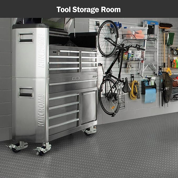 - Thickened Material: The garage flooring is made of heavy duty high quality Ox tendon material, wear and tear resistant.The diamond plate rubber mat roll waterproof on both sides, high elasticity and no deformation.