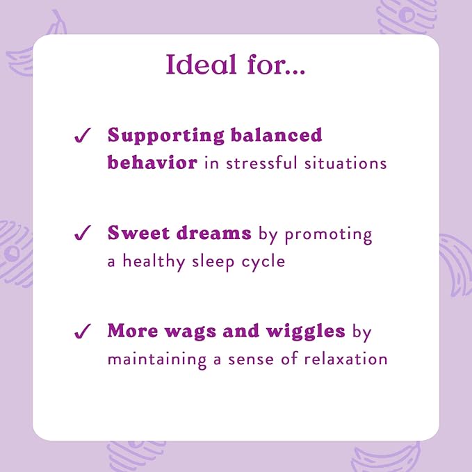 - Let’s help your pup manage everyday stress. A daily health supplement with natural, calming ingredients designed to help your doggy keep their cool - because you're not the only one in need of a little relaxation and TLC.