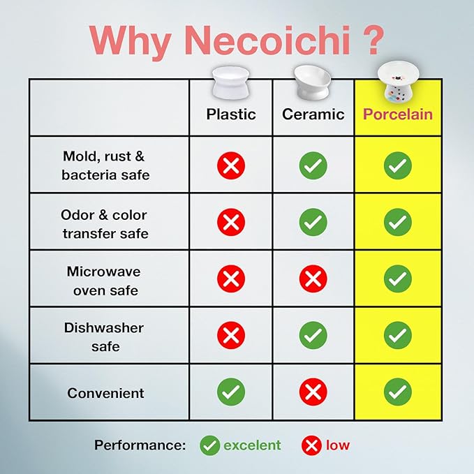 - Safe, Durable & Easy to Clean: Made from high-quality porcelain, free from lead and cadmium; meets strict US, EU, and Japanese safety standards; microwave and dishwasher-safe porcelain ceramic cat bowl.