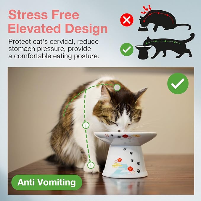 - Versatile Use: Ideal for flat-faced pet, senior cats, messy eaters, and big kittens; solves whisker fatigue, vomiting, obesity, aid digestion, neck straining, and feeding discomfort with elevated ergonomic design.