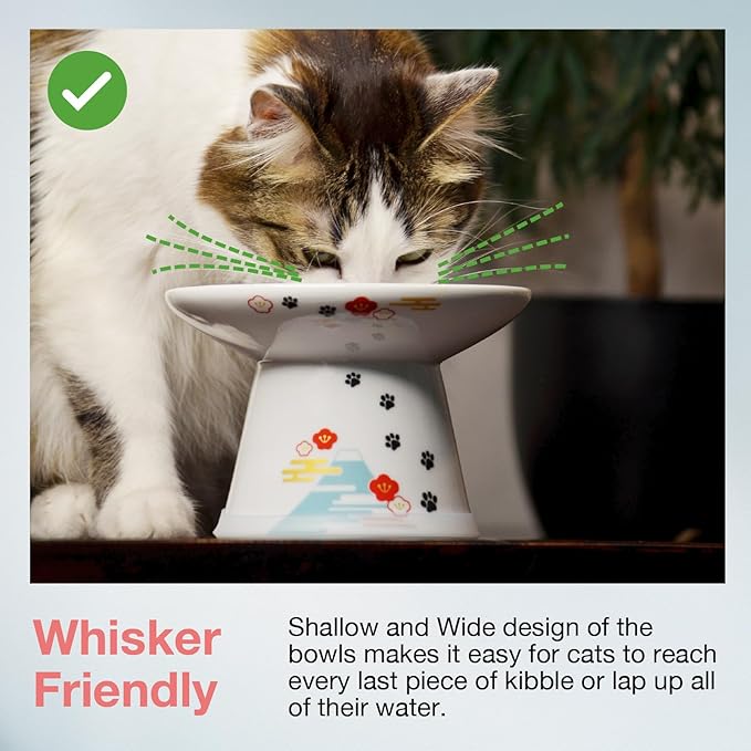 - Design & Comfort: This extra wide elevated cat food bowl (fuji limited edition) helps reduce whisker fatigue and strain on your cat’s neck; ideal for flat-faced breeds and messy eaters, serving as whisker fatigue cat bowl which keeps food centered.