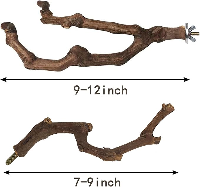 - [NATURAL GRAPEVINE] Each of our bird perches is made from natural, wild grapevines, providing pets with a natural and safe standing wood.Due to its natural material, each perch is unique, and is not exactly the same shape or size