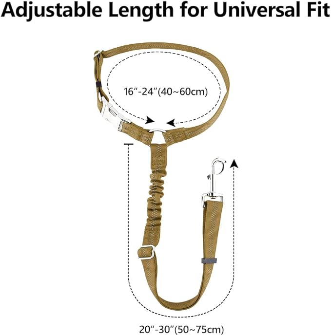 - 【Durable Shock Absorbing Bungee Tether】 The anti-shock belt has an elastic rubber band inside, that can reduce injury risk and muscle strain for your pet by absorbing the stress from sudden stops or sharp turns.