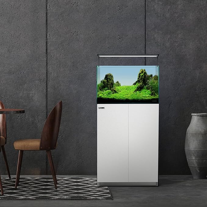 - 【Stable and Modern Design】 Features a contemporary minimalist style suitable for rimless aquariums, seamlessly matching any home decor with its simple black and white theme. The cabinet edges are treated with German sealing edge technology for a perfect seamless appearance, accompanied by spacious storage for large aquarium equipment.
