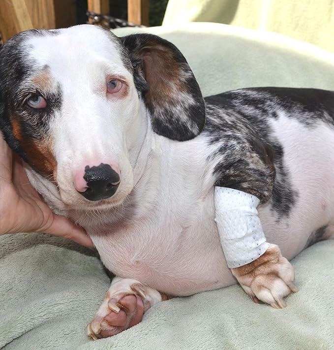 Basic Leg Bandages for Dogs, Cats, Pets -First- aid Non Adhesive Fur Friendly, Soft Stretch Wound Care, hot Spots, Fungus, Adjustable Fastening Strap Value Pack (2XS/XS 12-Pack)