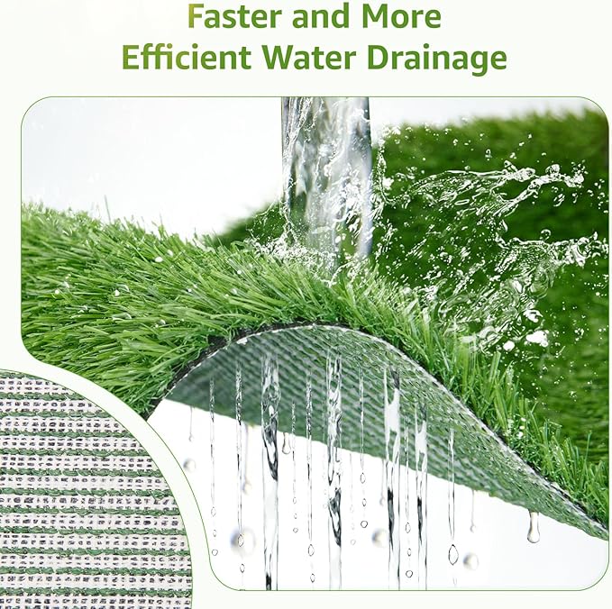- 【QUICKLY ABSORBENCY】Dog litter box with a specially designed backing allowing for complete drainage, you will have no need to worry about your dog running over your new rug in the living room with their muddy paws from potty training. Large artificial grass for dogs potty gets your dog used to the feel of real grass while potty training, to meet your pet’s needs.