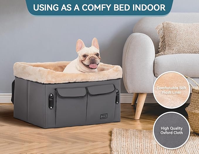 - [Washable & Comfortable Pad] The dog booster car seat is made of high-quality oxford and comes with a pad that can be removed for washing (hand washing is recommended). The upgraded mat comes with soft edges, suitable for pets to lay their head over the dog car seat for rest and relieve nervousness or carsick. It can also serve as a dog car bed.