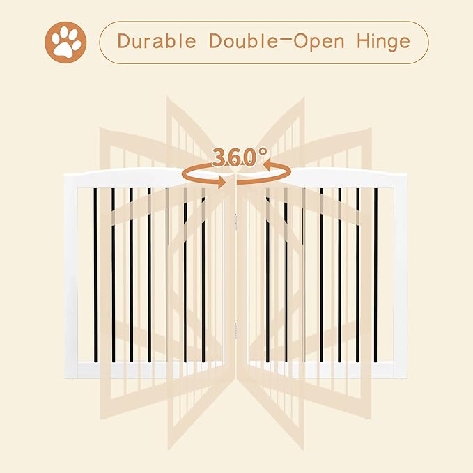 - 【NO ASSEMBLY REQUIRED】: The free standing dog gate is fully assembled and ready to use! Unfold the indoor dog fence and place it anywhere as a pet fence, room divider. Moreover, don't worry about the floor being scratched as the Non-slip rubber pads keep protecting your floor.