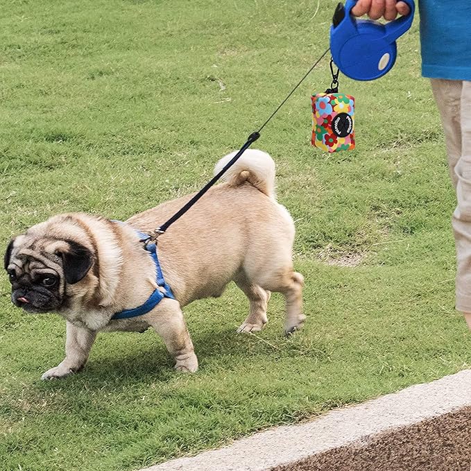 Petmolico Dog Poop Bag Holder Leash Attachment, Pet Waste Bag Dispenser Zippered Pouch, Fits Any Leash, Includes Free Roll of Dog Bags, Poop Bag Dispenser - 2 Pack, Colorful Flowers