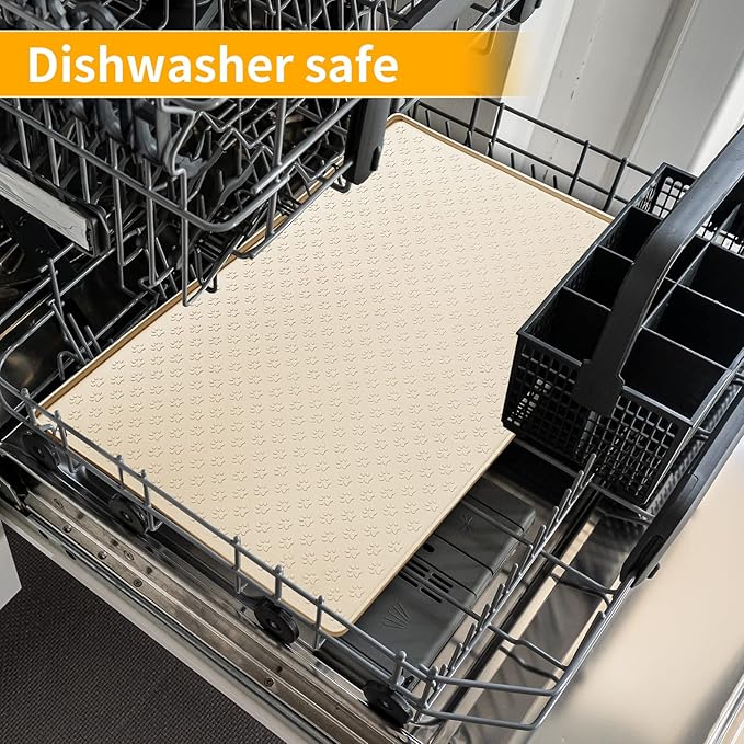 Ptlom Silicone Pet Placemat for Dog and Cat, Waterproof Non-Slip Pet Feeding Bowl Mats for Food and Water, Small Medium Large Tray Mat Prevent Residues from Spilling to Floor, Beige, 18" 12"